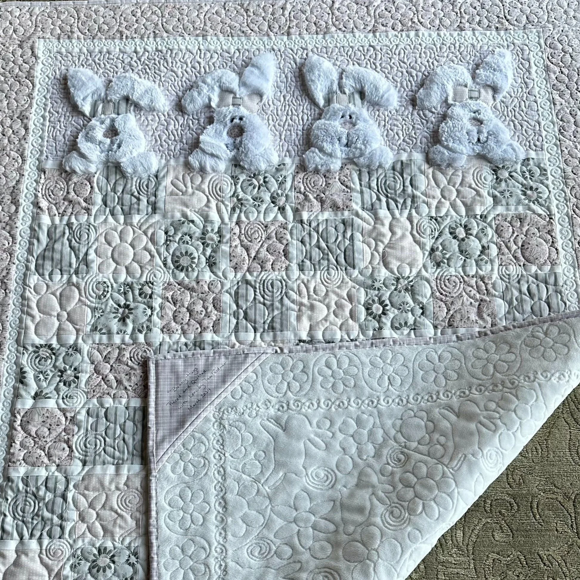 Using a professional long arm quilting machine, we ensure durability, even stitching, and a high-quality finish that enhances the design and longevity of your quilt. Each quilt is custom-made with careful attention to detail, offering a perfect blend of comfort, nostalgia, and craftsmanship.